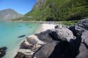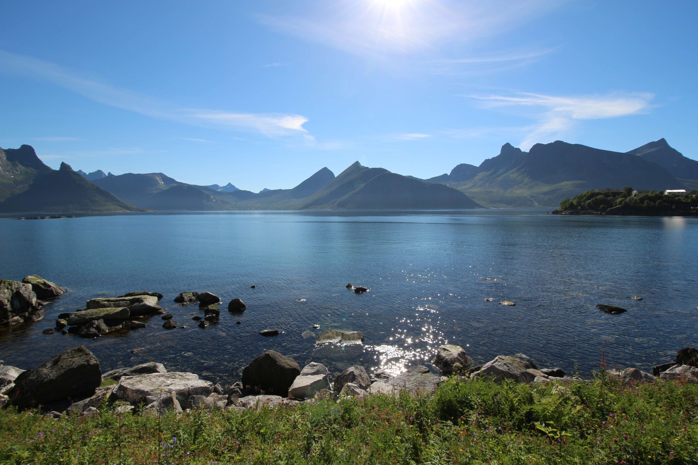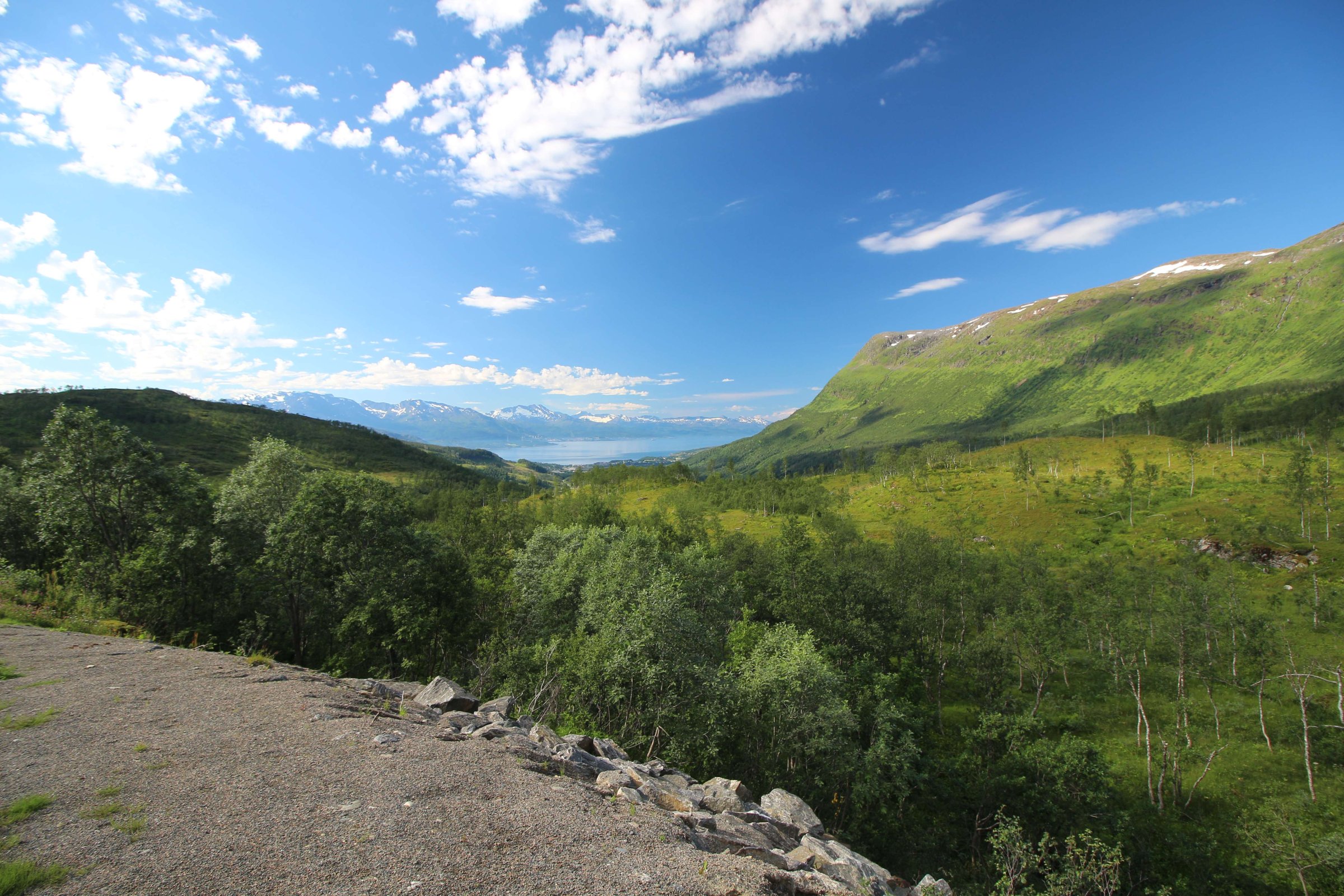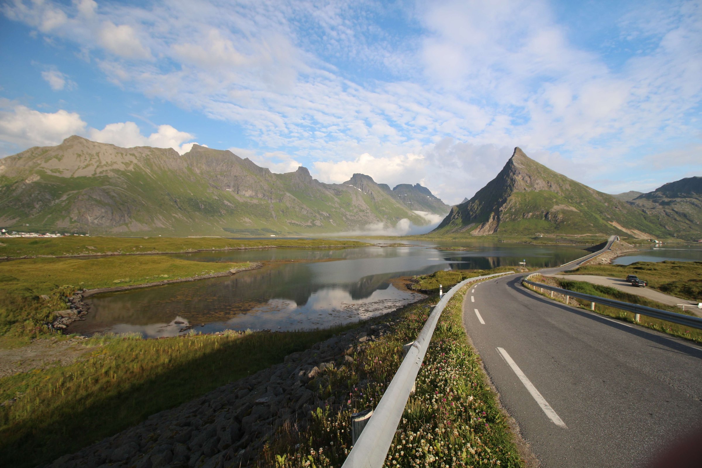 Итак, 22-ое июля 2016 года, проснулись мы в местечке под названием Birtavarre, собрались и поехали в сторону Лофотенских островов. На пути у нас был остров под названием Сенья (Senja), до него нам предстояло проехать около 250 км. Ну и как полагается, мы очень долго ехали, так как по дороге много останавливались, чтобы полюбоваться видами. Также раз в 2-3 дня нас задерживало то, что мы останавливались в пути и готовили нормальную еду. До готовки мы заезжали в супермаркет, обычно это был Rema 1000, и покупали там красную рыбу по цене 400 руб. за 400 гр. Рыба была вкусная и без костей, и мы, проголодавшись, съедали её с супом за раз.