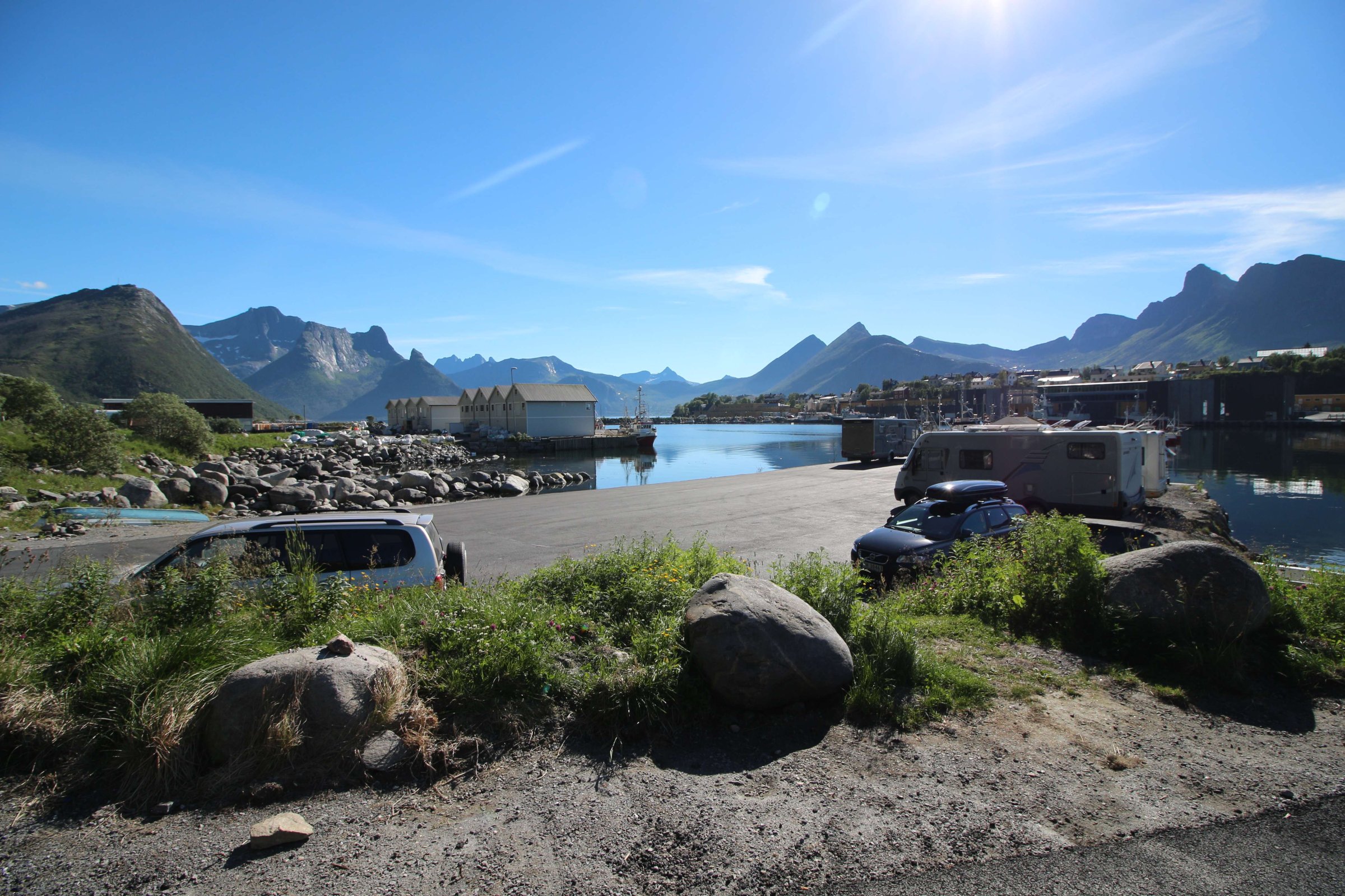По плану у нас был вечером паром на другой остров (Аннёйа, Andøya). Я его не бронировал, а просто знал его расписание и хотел, чтобы мы туда попали. В итоге мы так заходились по достопримечательностям о. Сенья, что не успели на паром. А когда приехали на место его отправления, поняли, что, возможно, там у них большая очередь на него, так как он редко ходит. Поняв это, мы поехали на своих 4-ых с этого острова в объезд до острова Аннёйа. Ехали мы долго, и уже начало темнеть. Мы начали оставлять надежду найти нормальный ночлег, как на пути нам попался кемпинг, который был ещё открыт, и это в 23:30. На ресепшене сидела маленькая девочка, которая разбудила свою маму, и та выдала нам ключи от кабинки после того, как приняла оплату. А также она бесплатно дала два талончика на душ, который в Норвегии почти везде не бесплатный. У душа висит автомат, который дает горячую воду только за монетки. В среднем 4 минуты душа с горячей водой стоят около 80 руб.