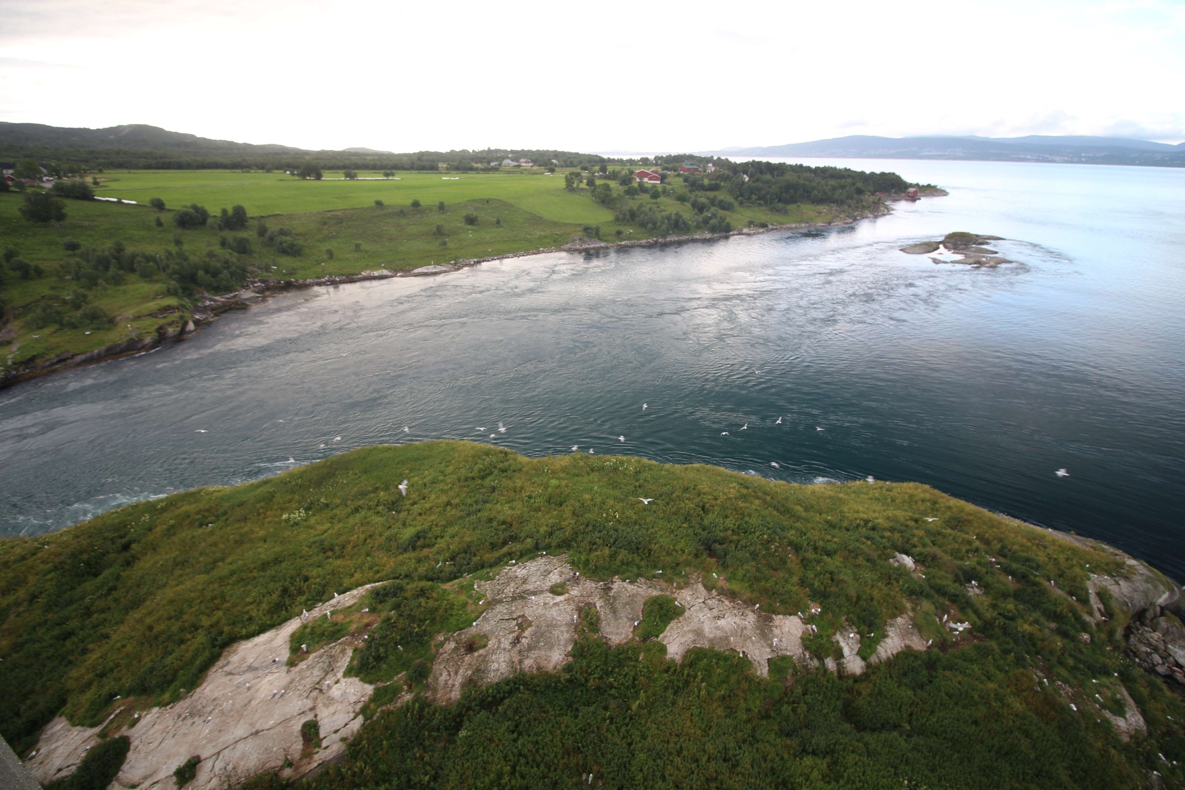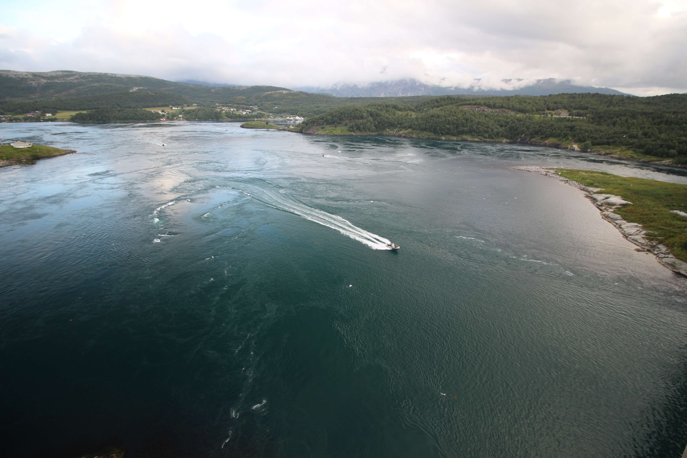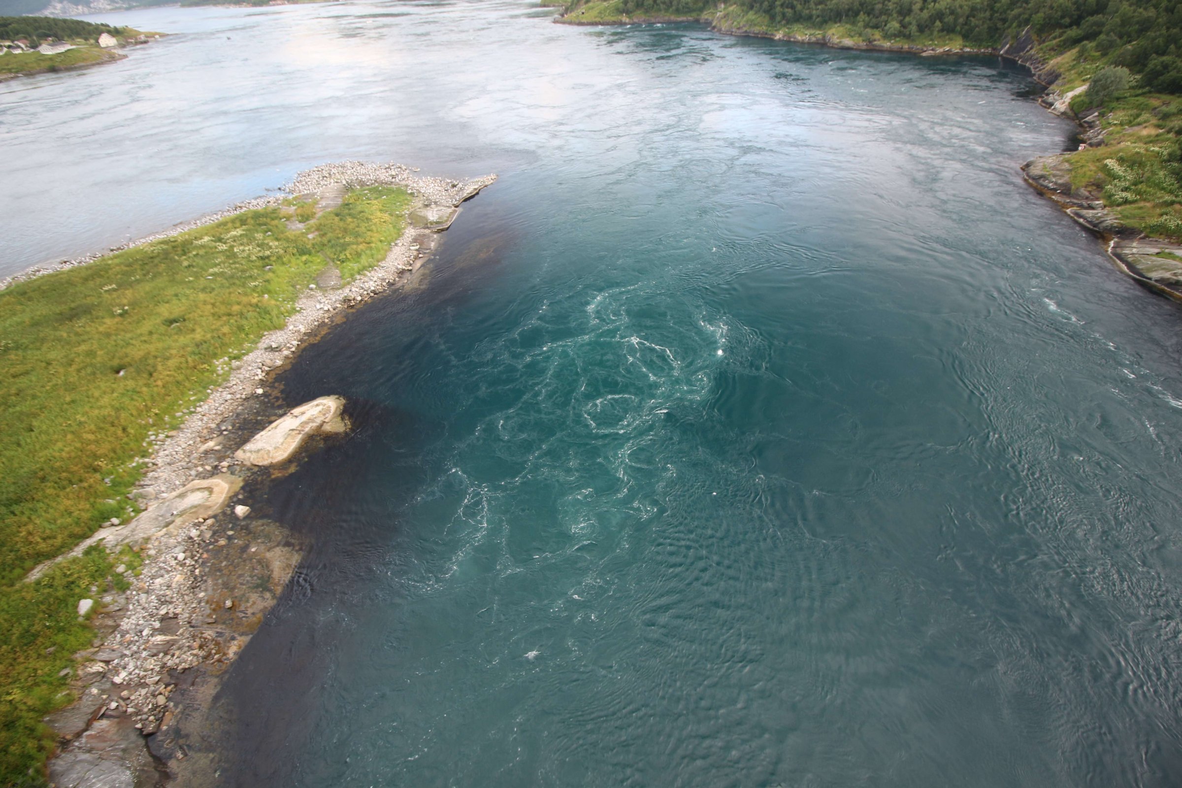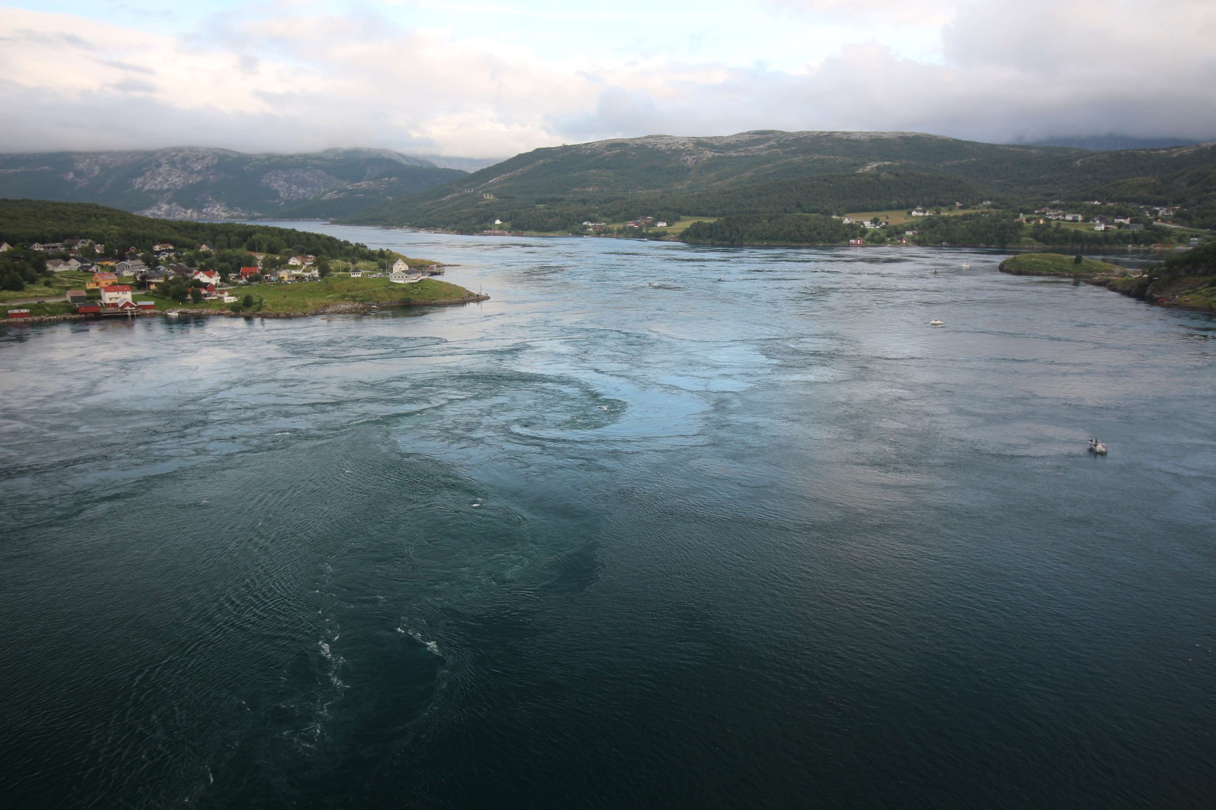 Спустя 3 дня мы собрали палатку, в которой теперь были готовы спать и дальше в нашем путешествии, и выдвинулись по побережью Норвегии. Как рассказала управляющая, чтобы идти вниз по западному побережью Норвегии, надо по-любому сесть на какой-нибудь паром вместе с машиной. Но тут было несколько вариантов. Один из них - плыть из послёлка “О”, что находится почти у конца Лофотенских островов, но этот паром и дорог, и ждать его долго. Другой вариант - плыть из Лодингена в Богнес - это и дешевле, и быстрее. Так мы и сделали. Почти весь этот день шёл дождь и закончился он только тогда, когда мы приехали к следующей нашей точке: Сальстрауменским водоворотам. Фактически это узкий пролив, соединяющий океан и фьорд, где примерно 2 раза в сутки происходят приливы и отливы. Расписание этих приливов и отливов известно на месяц вперёд и есть в интернете. Мы ехали быстро, чтобы успеть на вечерний отлив, но в итоге минут на 30 не успели. Поэтому решили заселиться в кабинке или гостинице. После 3-х дней в палатке хотелось комфорта, но ничего не нашли дешевле 10 000 руб. за ночь - это был огромный коттедж.