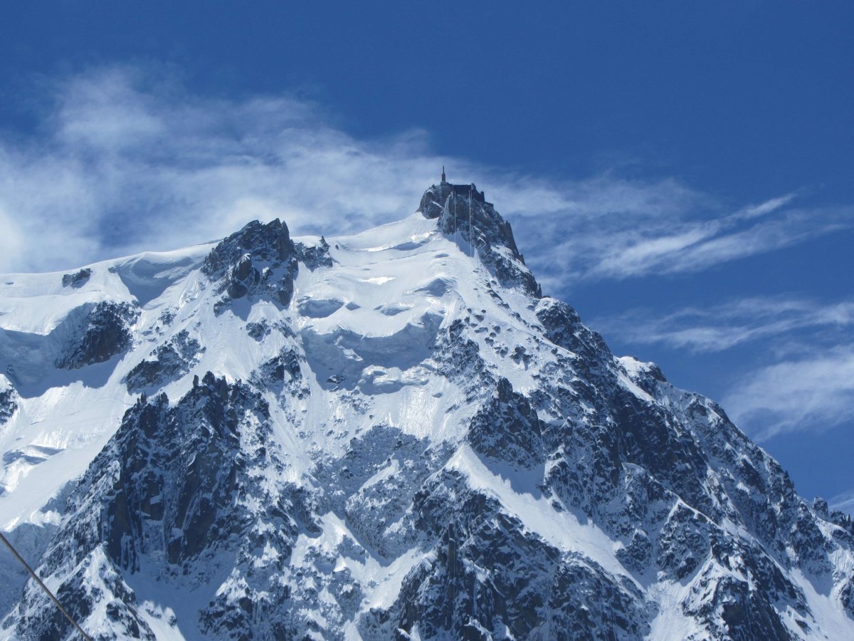 Сам пик Aigulle de Midi, который я сфотографировал с промежуточной остановки подъёмника:
