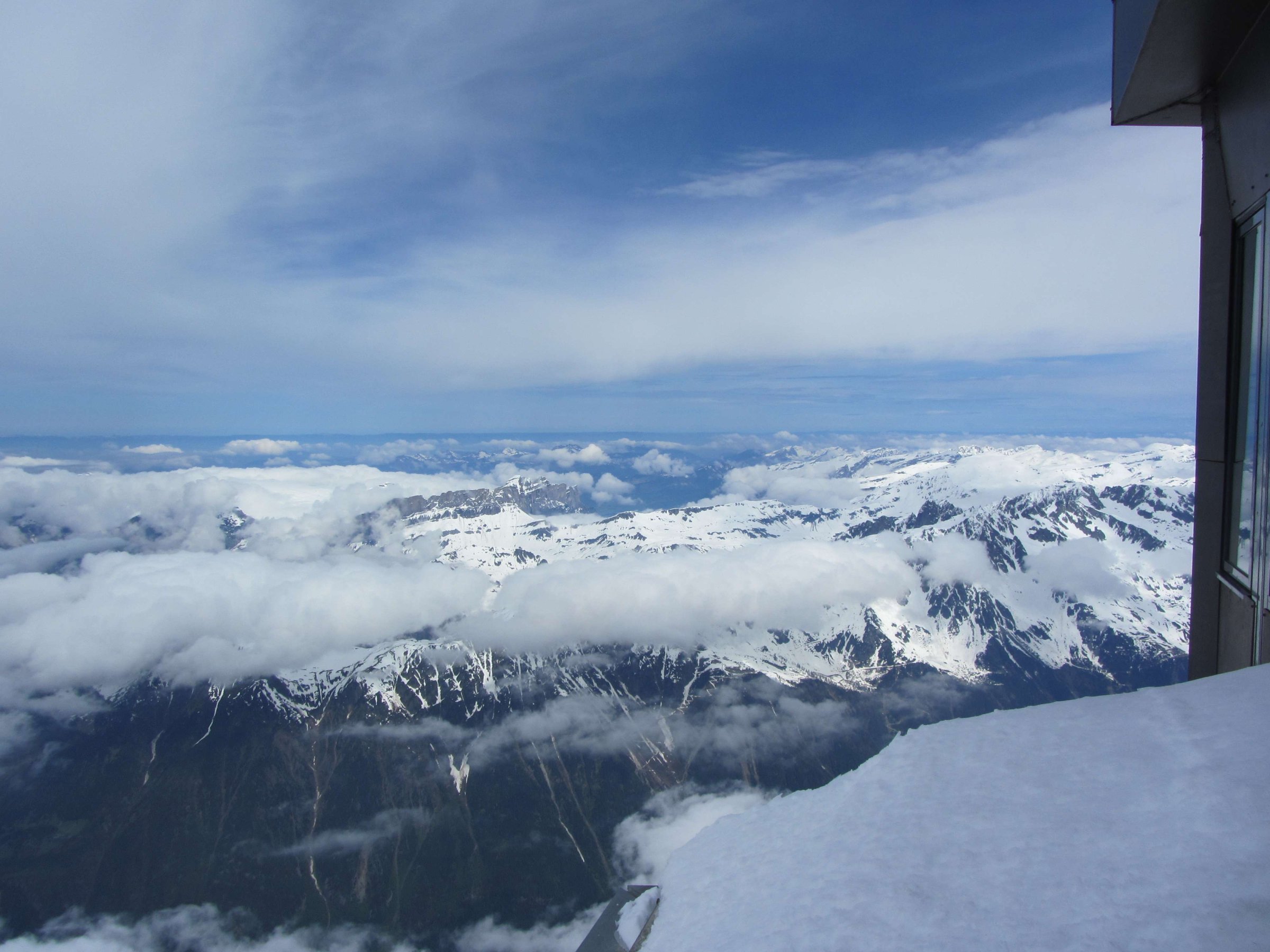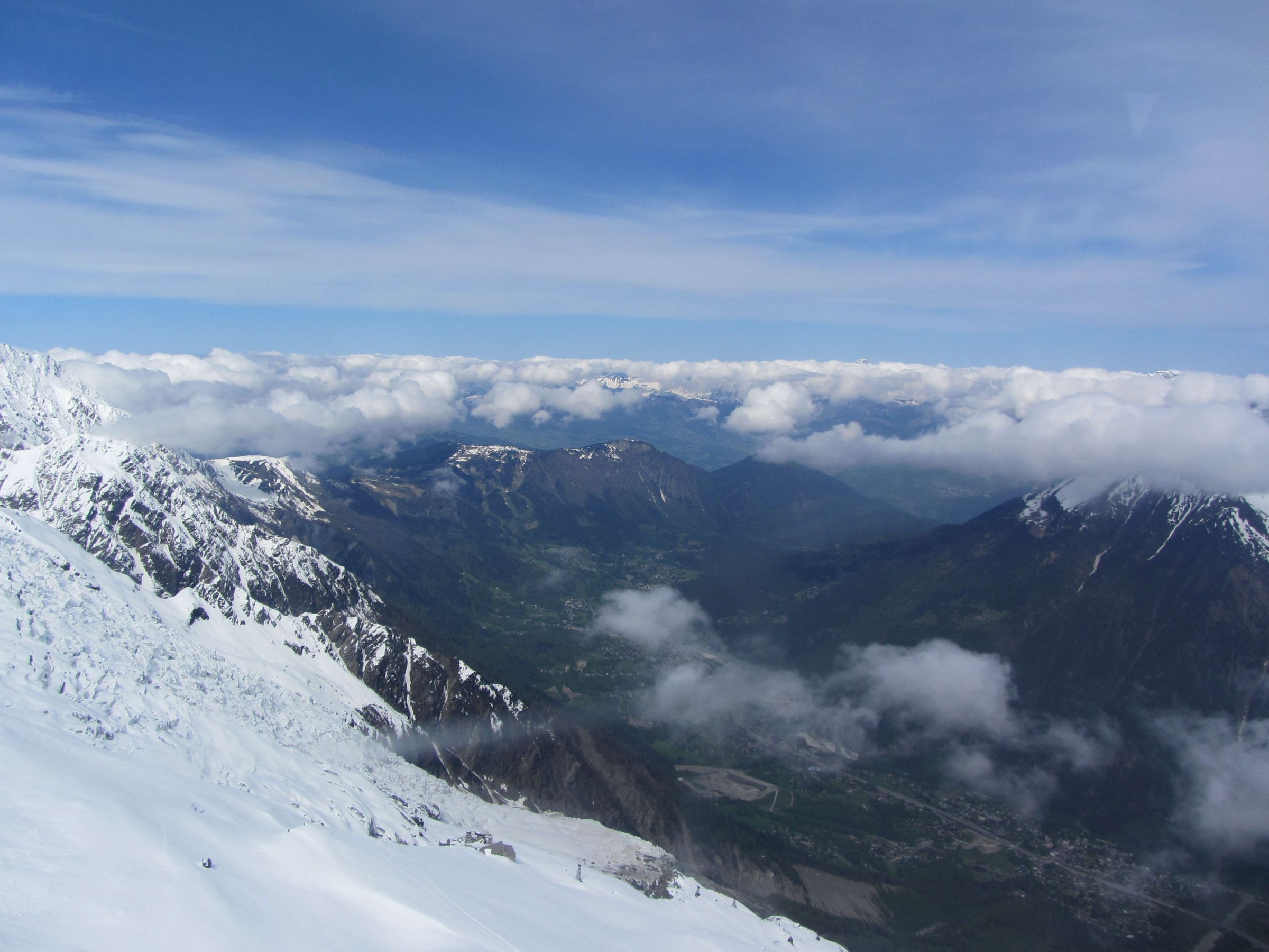 В июне 2013 года мы посетили город Шамони (Chamonix). Это не совсем Швейцария, но я решил в эту тему включить статью, так как посетили мы этот город, прибыв из Швейцарии. В этом городе находится подъёмник на вершину Aigulle de Midi (3842 метра), из которой открывается красивый вид на Монблан: