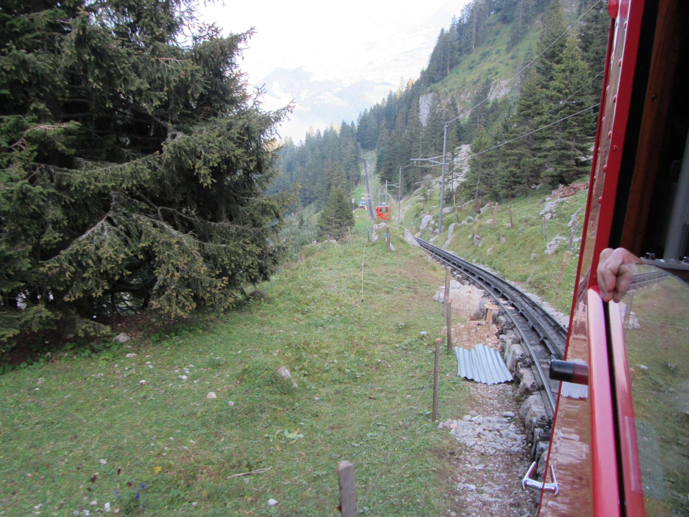 Вид на Люцерн, можно видеть подъёмник, но он поднимается из того места, где нет поблизости железнодорожного вокзала: