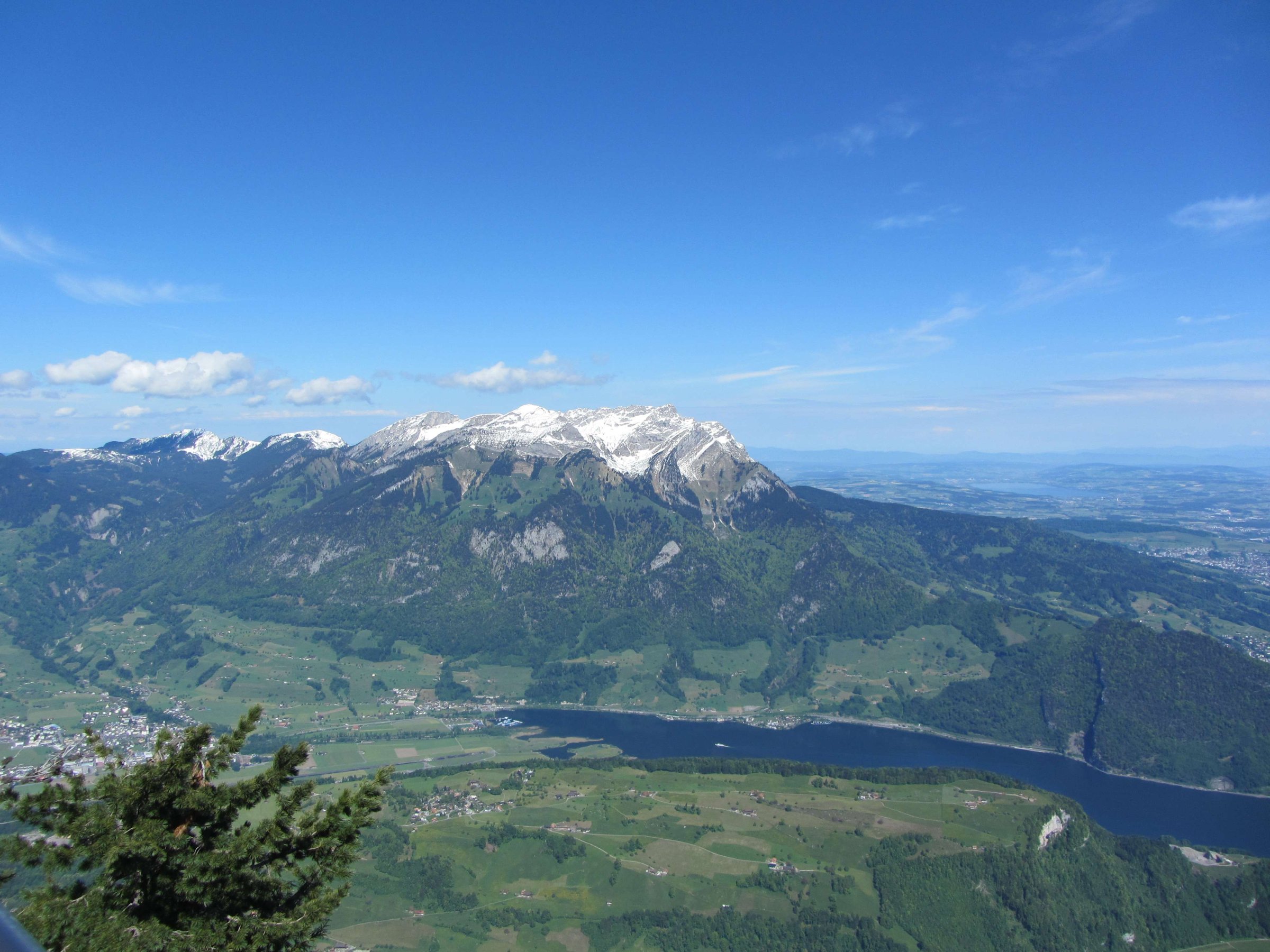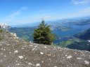 Вид с горы Stanserhorn на Фирвальдштетское озеро, также там слева можно увидеть пик невысокой горы, на которой размещён