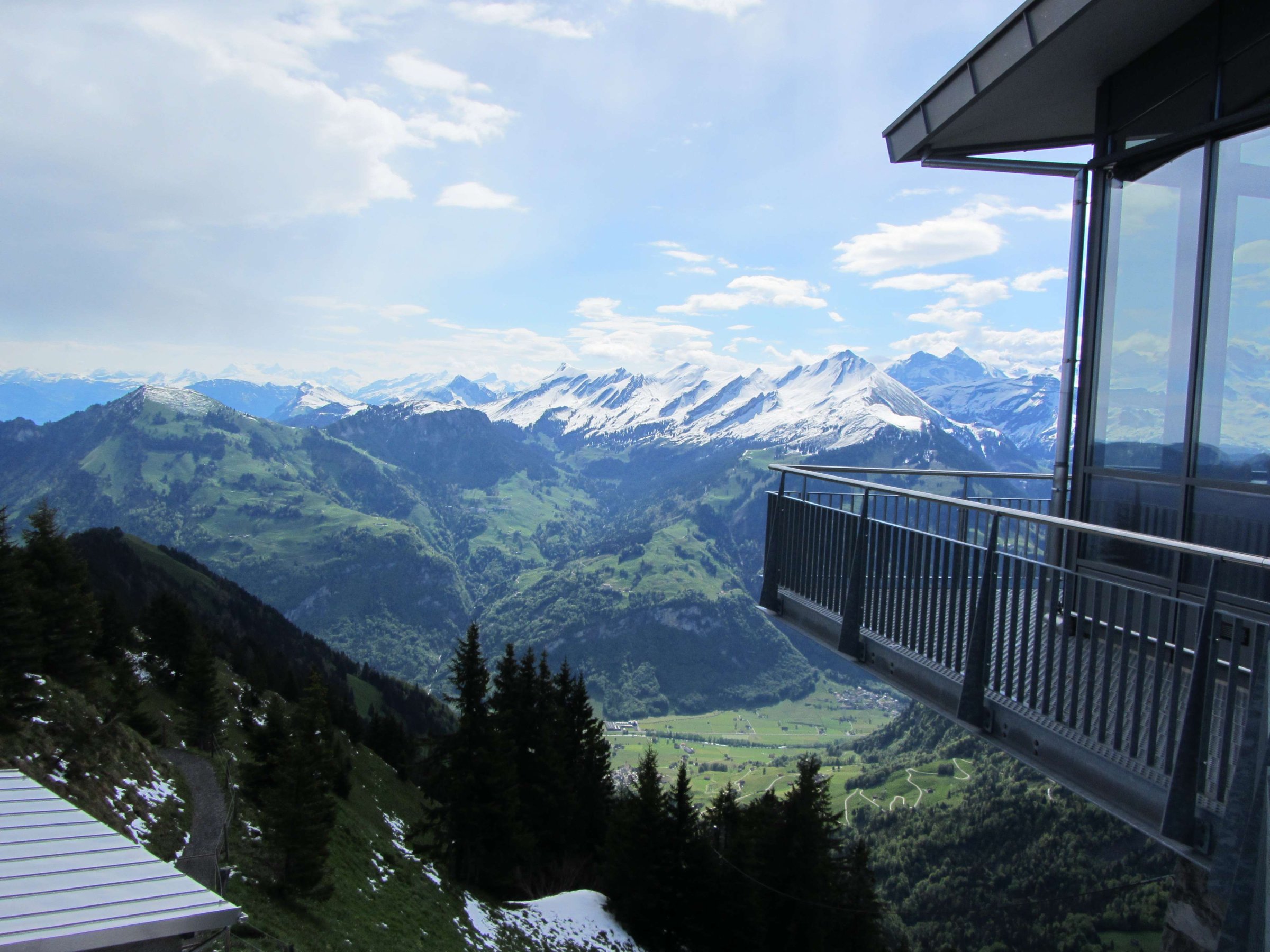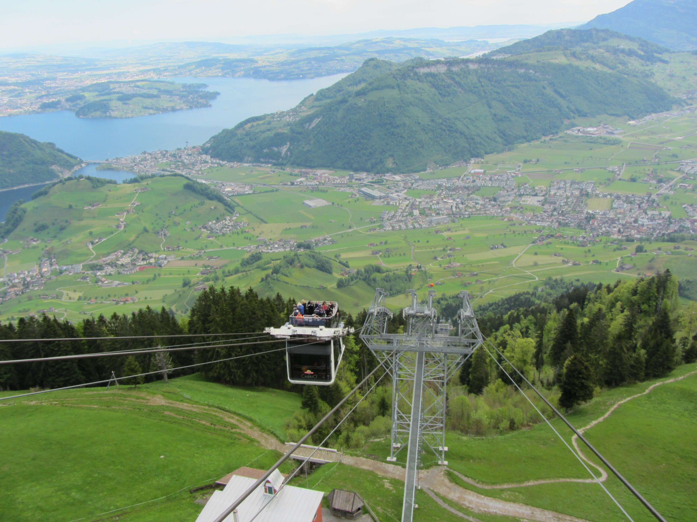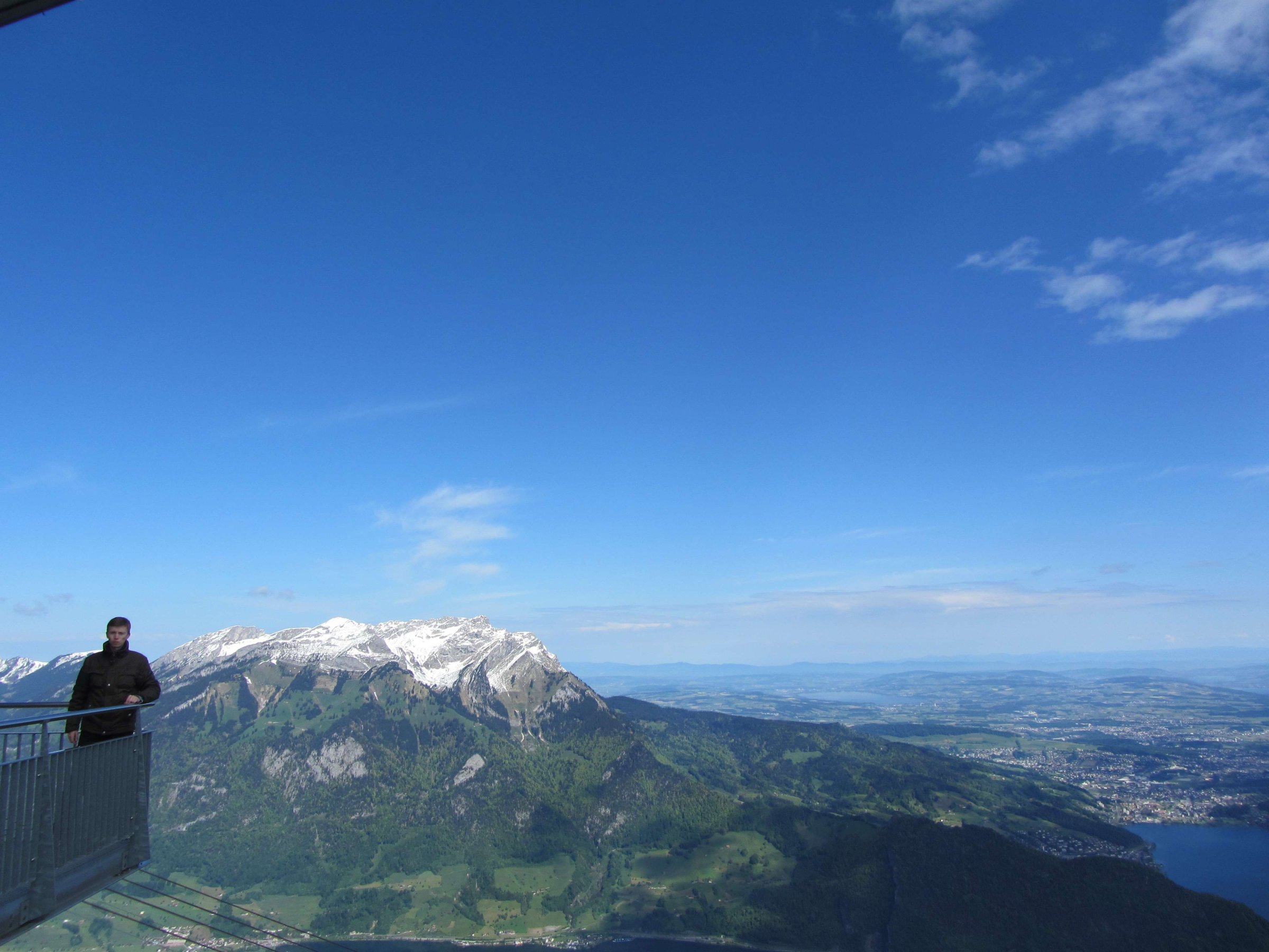 Привет. Сегодня я расскажу про путешествие на вершину горы Stanserhorn. С этой горы (высота примерно 1850 метров) открываются красивые виды на Швейцарские Альпы и на соседнюю гору Пилатус (высота примерно 2050 метров), которую хорошо видно из Люцерна. Также путешествие в это место отличается от других новым типом подъёмника (даблдекер), он двухэтажный. Во время подъёма можно перемещаться с первого (крытый) на второй этаж (открытый) по лестнице.